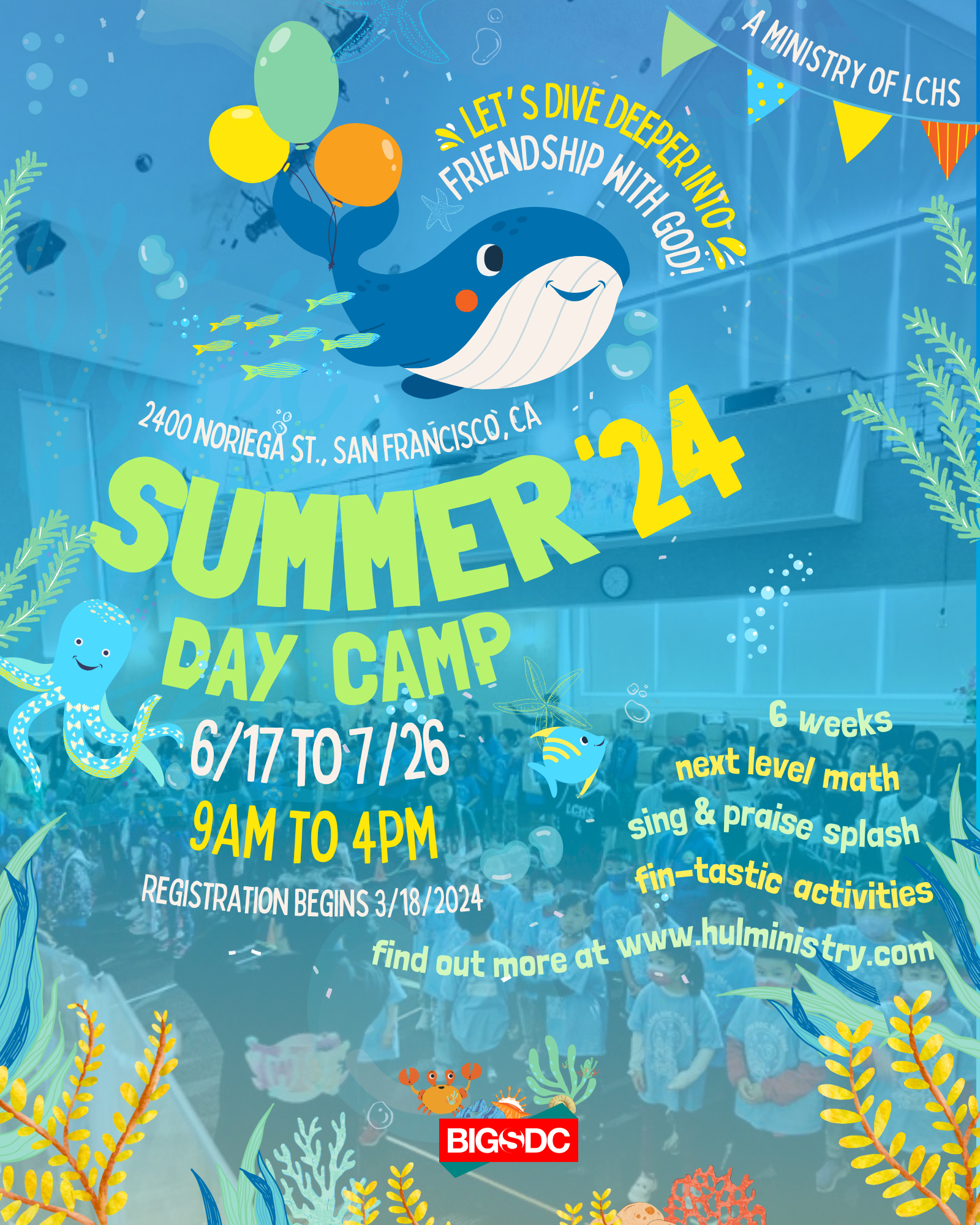 With SCUBA as our praise & worship theme at Summer Day Camp, kids dive into an enchanting undersea journey discovering the endless love of God and the true essence of living water. Through immersive experiences in the Word, they uncover that God is a real and loving friend for everyone—one we can trust forever. Join us in diving into friendship with Jesus, exploring the depths of faith and friendship like never before! You can expect our camp to be full of faith discoveries, memorable music, and epic adventures that help kids grow in faith!