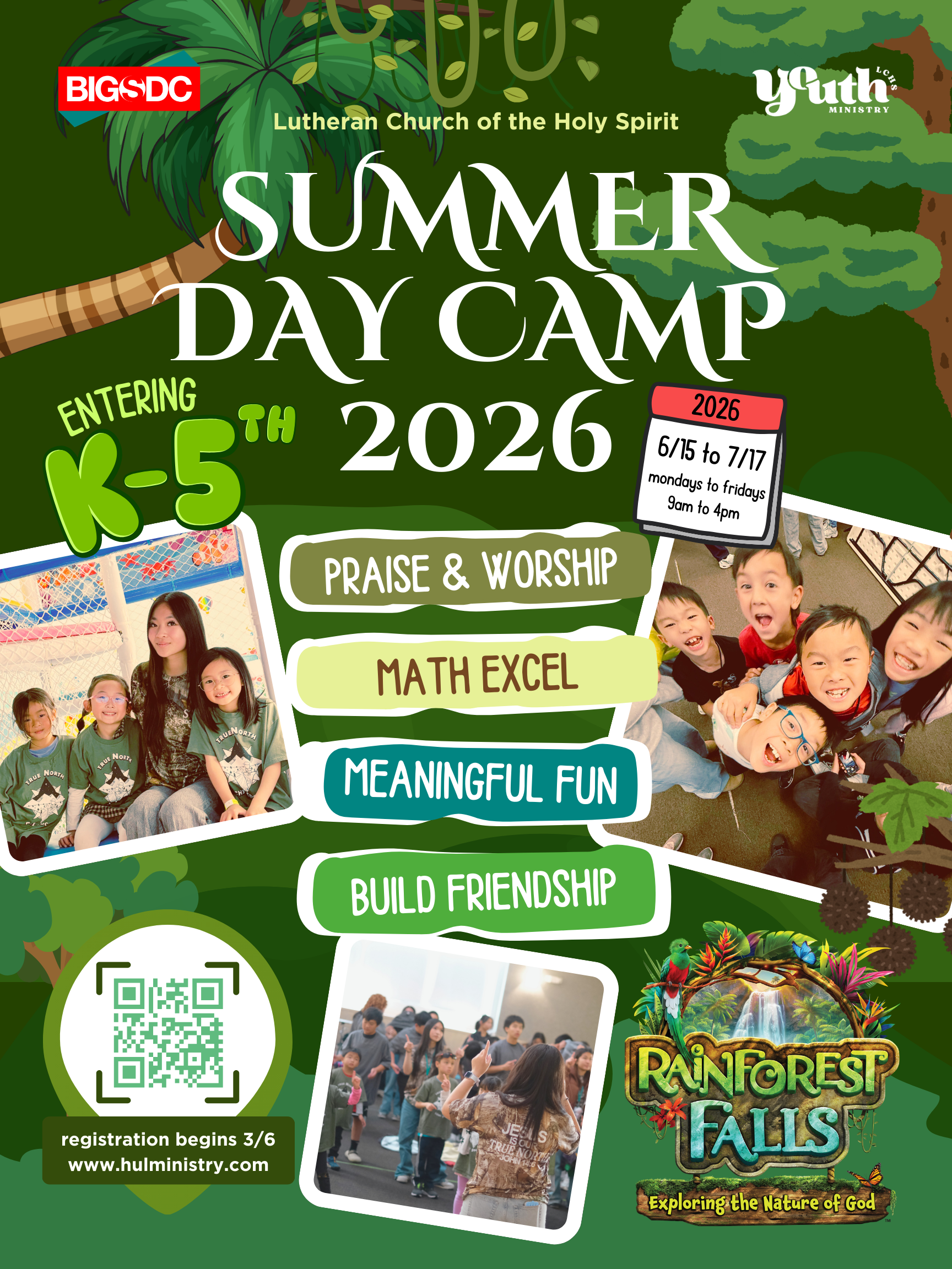 This year, our camp theme for SDC is Rainforest Falls, WHERE WE EXPLORE the Nature of God!